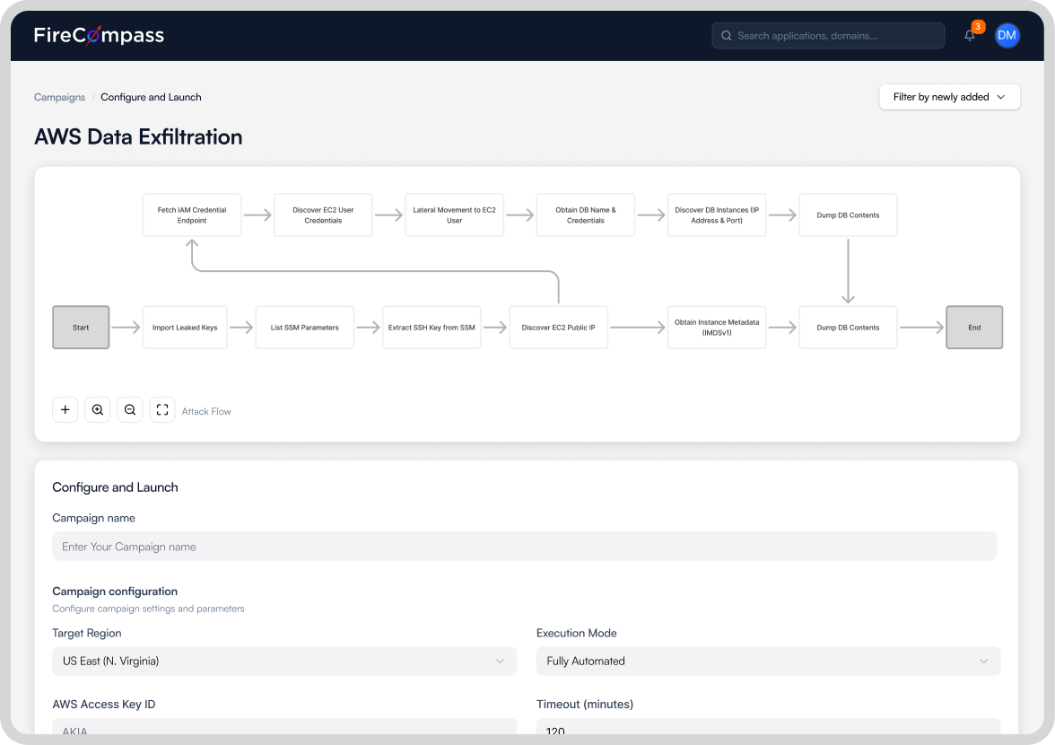 FireCompass simulates MITRE alligned full kill-chain behavior like credential reuse, session hijack, or domain hopping.